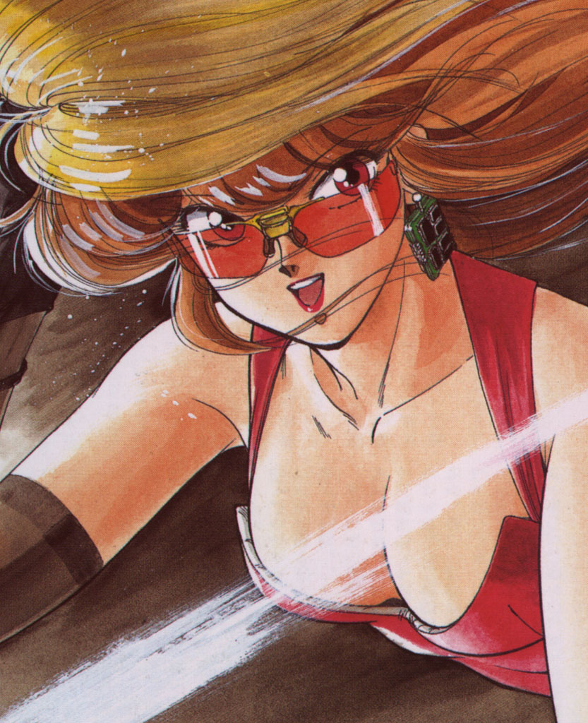 But a pair of eyes were watching Priss very closely. The owner of those eyes pulled up in a red Benz and said, "Will you entrust me with that burning heart of yours?" |